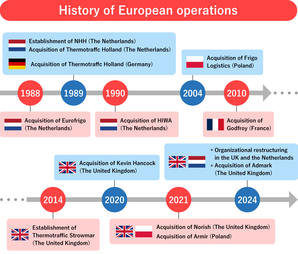 The group also acquired Thermotraffic Holland and Thermotraffic GmbH, which were engaged in the low-temperature transportation and customs clearance business, and launched a forwarding business that handles everything from warehousing to import customs clearance and land transportation by truck.