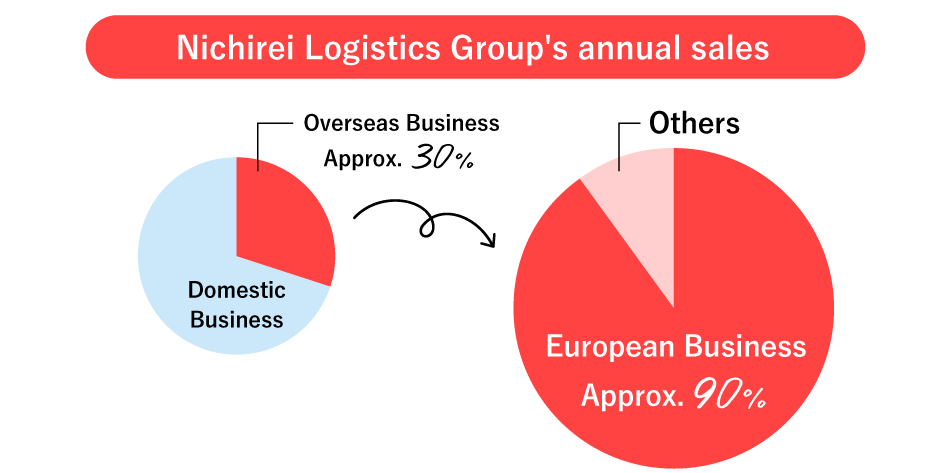 Of the Nichirei Logistics Group's overseas business sales, "European operations" account for nearly 90%.