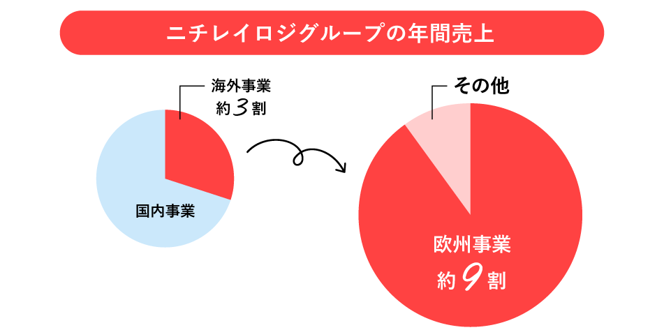 ニチレイロジグループの海外事業の売上のうち、「欧州事業」が占める割合は、9割近くにも及びます。