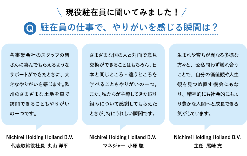それらを牽引してきたのが、日本と海外各社の橋渡し役となって欧州各社の事業成長を支援する駐在員の存在です。